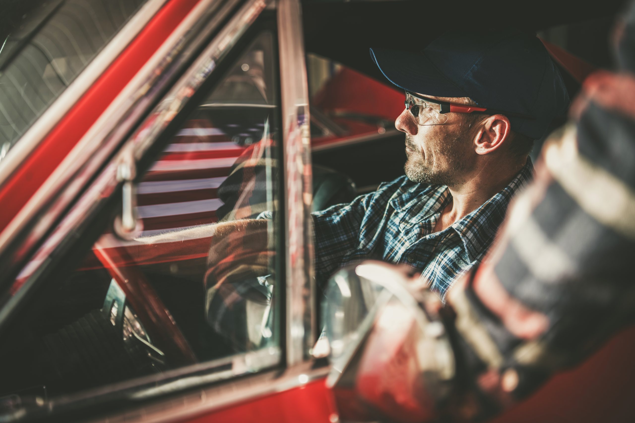 Caucasian American Classic Cars Enthusiast in His 30s Working on His Vehicle
