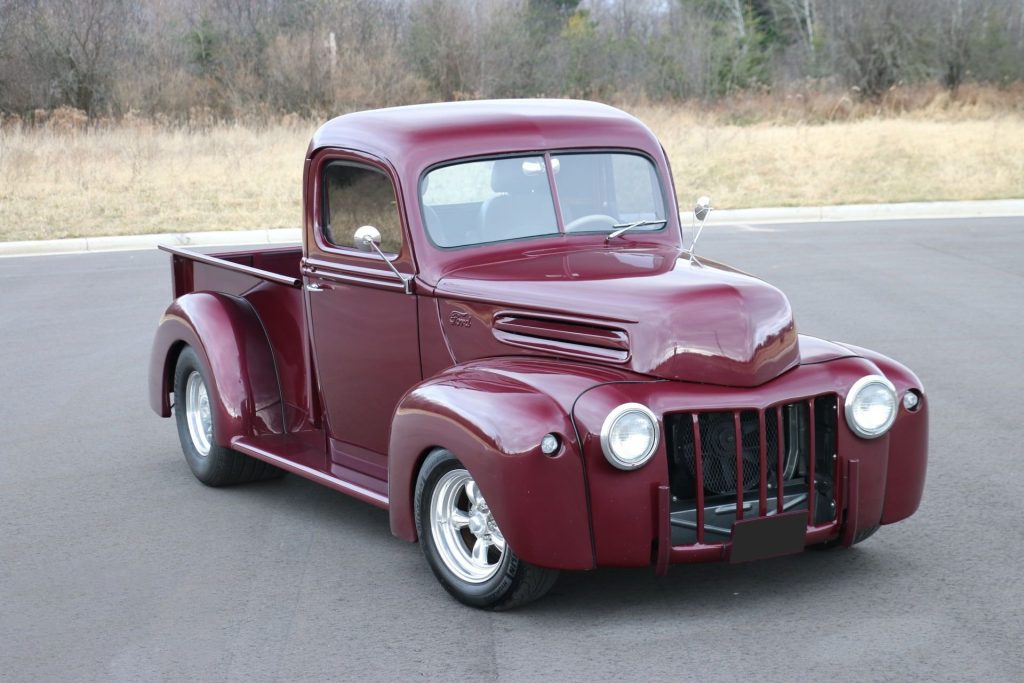 Here is a beautiful 1947 Ford F1 pick up. This truck has been received an extensive and custom ground up rebuild. There is a lot more to this truck than meets the eye. It has a fully boxed frame with Fatman suspension front and rear with a Currie Ford 9 and 3.50 gears, rack and pinion power steering, tubular control arms and power disc brakes. The engine is a healthy small block Ford 351 Winsor toped with and Edelbrock carburetor, Edelbrock Performer 351 aluminum intake and a set of cast iron World product cylinder heads paired to a Ford Top Loader 4 speed manual transmission. Steel front fenders, hood and doors with fiberglass rear fenders.The interior is finished with leather bucket seats, custom leather door panels and a nice set of Stewart Warner gauges. Excellent running and driving truck with only 6k miles driven since completed.