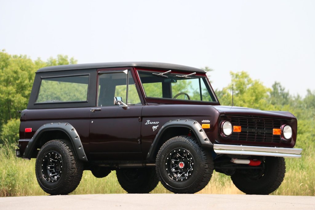 Here is a beautiful and rust free 1970 Ford Bronco. Fully restored and painted is a deep metallic black cherry. Super smooth running and date correct rebuilt 302 V8 paired to a matching 3 speed manual transmission. New black seats with center console, nicely done bed liner flooring and matching top. Chrome valve covers and air cleaner. Dual reservoir master cylinder, dual exhaust, Five 15'' Fuel aluminum wheels with brand new Dick CEPEK Fun Country all terrain tires.…