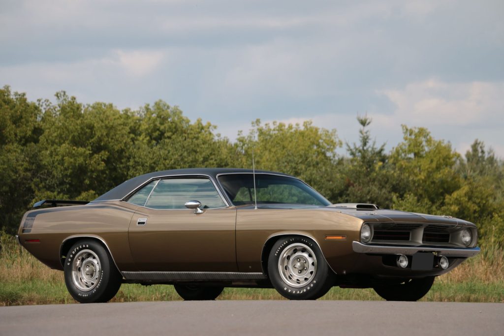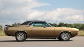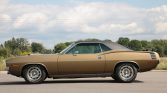 A Shaker-equipped machine, this car boasts a period correct 426/425 HP Hemi engine under the hood that was completely and professionally rebuilt. Factory dual-quad carburetion, heavy-duty internal components and the heavy-duty cooling equipment. Behind that is the date-coded A727 Torque Flite transmission.To make driving more enjoyable, both power steering and power brakes with front discs were optioned on this car. The body is finished in beautiful Citron Gold paint with a black vinyl top, which is matched to…